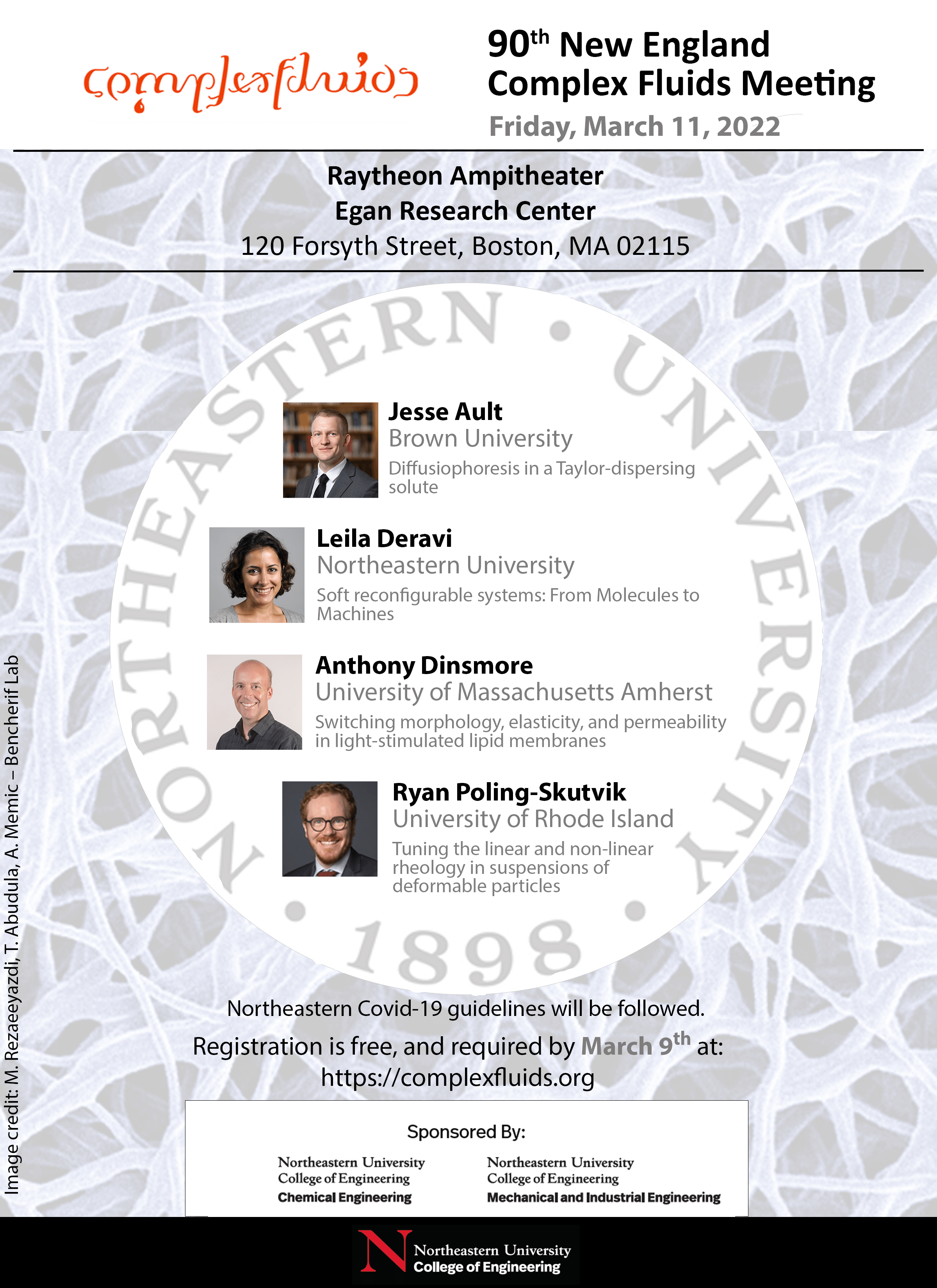 This event is free of charge, however, you must register by March 8th to attend. New registrants must create a member profile to gain access to registration. More information on past and future meetings can be found at complexfluids.org.