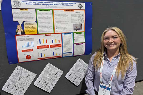 Chemical engineering student Kate Bevec, E’26, won third place in the Education and Other category at the AIChE National Student Conference for her poster on “Diverse Learning Tools for Neurodiverse Learners: The Effectiveness of Comics and Videos and Engagement Patterns in STEM Education.”
