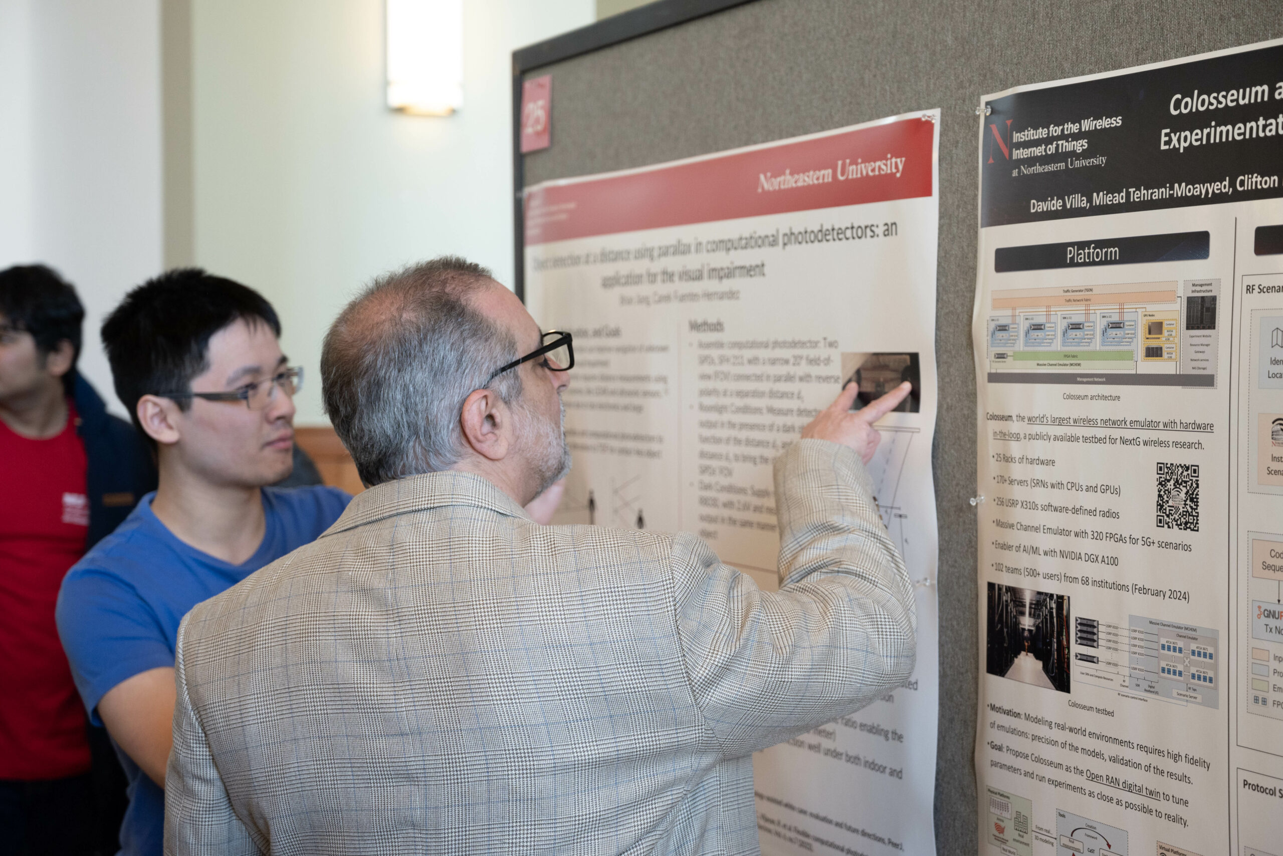 - Dean Abowd examines student Brian Jiang’s project methods.